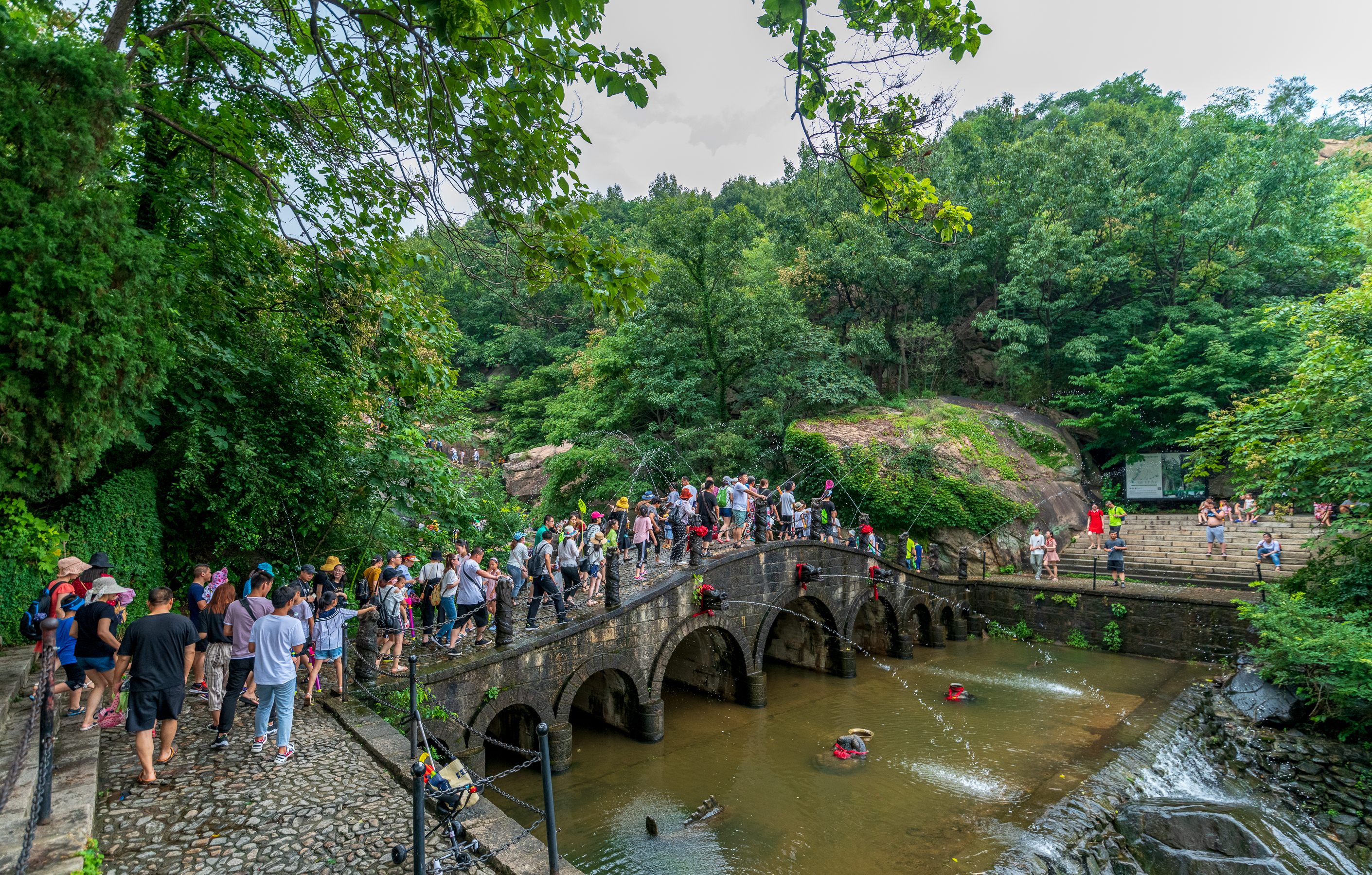 在景區(qū)老龍?zhí)叮?ldquo;吶喊噴泉”邊擠滿了駐足的游客。游客只要用力地吶喊,眼前就會(huì)出現(xiàn)一柱撥地而起的壯觀噴泉,喊得越大聲,噴泉噴的就會(huì)越高,讓人們仿佛在頃刻之間有了一股神力。在即將到來的“七夕”情人節(jié),景區(qū)還加推限量的免費(fèi)體驗(yàn),讓游客在山海之間,對(duì)心愛的人大聲喊出自己的愛。