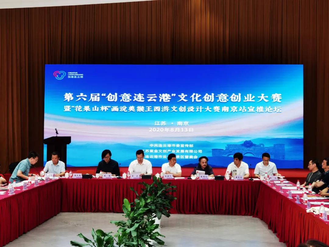 2020年8月13日上午,第六屆“創(chuàng)意連云港”文化創(chuàng)意創(chuàng)業(yè)大賽暨“花果山杯”畫說美猴王西游文創(chuàng)設(shè)計(jì)大賽宣推論壇在南京紫金文創(chuàng)園舉行,連云港市文旅集團(tuán)總經(jīng)理助理劉克軍、大圣文創(chuàng)副總經(jīng)理孫翔受邀出席本次南京站宣推論壇。