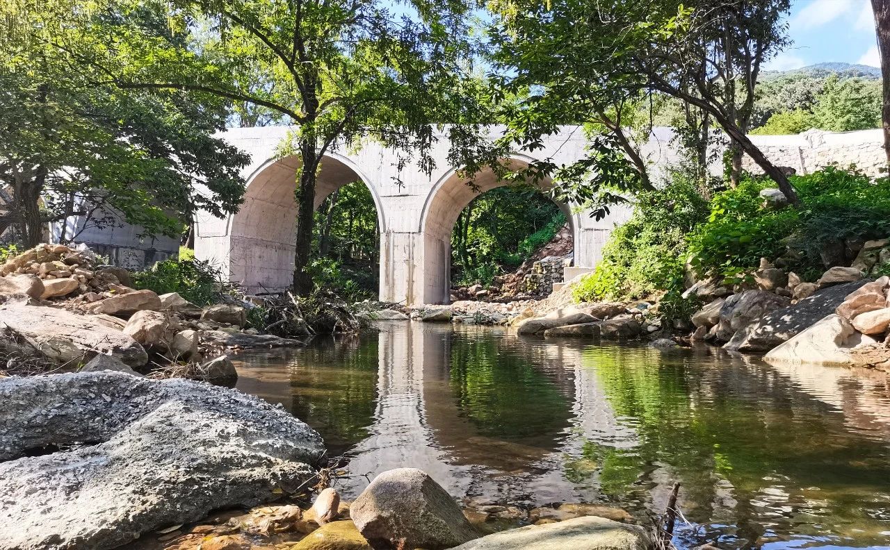 新建的橋梁宛如兩道彩虹橫跨孔雀溝景區(qū),登橋遠(yuǎn)眺,孔雀溝美景盡收眼底,茂密的樹(shù)木和巨大的橋洞映襯在清澈的湖水中,描繪出了大花果山景區(qū)全新的畫(huà)卷。