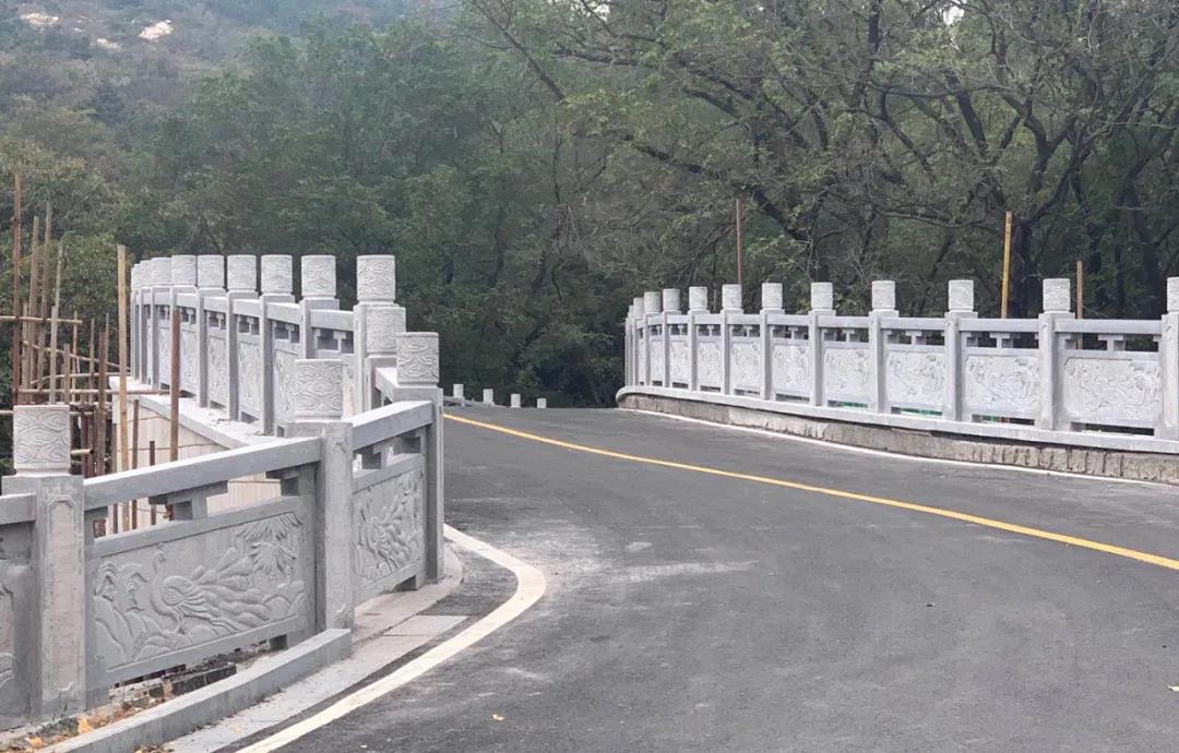 在項(xiàng)目現(xiàn)場,筆者看到橋梁瀝青鋪設(shè)、標(biāo)線施劃、欄桿安裝等工作都已經(jīng)結(jié)束,工人正在拆除腳手架,并對道路進(jìn)行清掃。700余米修葺一新的道路蜿蜒盤旋,為孔雀溝景區(qū)增光添色。