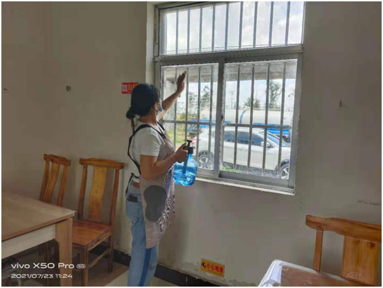 實(shí)行24小時(shí)輪班制,對(duì)辦公區(qū)域、公共廁所、餐廳、食堂進(jìn)行不定時(shí)消殺工作,做好消殺記錄。對(duì)外來(lái)人員進(jìn)行登記,出示健康碼。實(shí)行分餐制,分批打餐,一次不超過(guò)3人,各自帶回辦公室就餐。