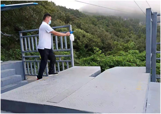 此次設(shè)備檢查及保養(yǎng),使設(shè)備始終保持著良好的狀態(tài)。與此同時,滑索項目員工認真做好每日消毒項目區(qū)域、每日測量體溫等防疫工作。