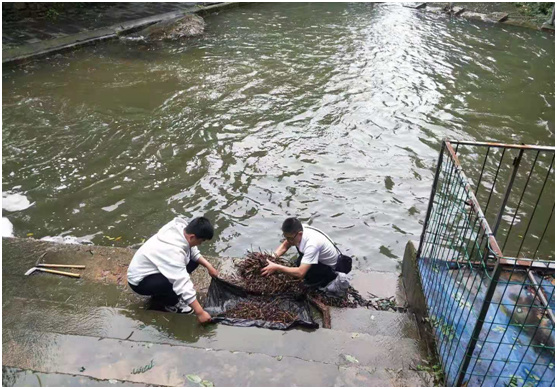 滑索、漂流項目現(xiàn)場負(fù)責(zé)人帶領(lǐng)工作人員,對滑索項目售票房、游步道、游客等候處等區(qū)域進行衛(wèi)生清掃,清理路面枯枝樹葉、游客等候處地面雜草,同時對漂流項目游步道及水塘倒掉的竹子、樹枝進行修剪及清理。