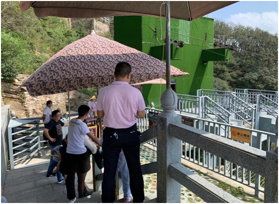 假日期間,每日對員工進行體溫檢測,測量正常后方可上崗,并要求上班期間全程佩戴口罩;安排專人,每天定期對滑索項目售票房、游步道、游客等候處等區(qū)域進行全面清潔消殺;排隊區(qū)域設(shè)置一米間隔線,安排引導(dǎo)者提醒游客保持合理距離,要求檢票人員在游客規(guī)范佩戴好口罩后方可放行,在游客等候區(qū)域,搭建了13頂遮陽傘,為游客“送清涼”,各項舉措確保游客平安歡樂度過中秋小長假。