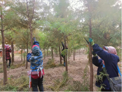 此次主要是對(duì)前關(guān)村苗圃地200.5畝、后關(guān)村苗圃地250.4畝、丹霞村苗圃地562.5畝、西山村苗圃地148.09畝,共960.99畝苗木進(jìn)行修剪,在修剪作業(yè)時(shí),綠化工人將病蟲(chóng)枝、干枯枝、斷枝、下垂枝、干生枝以及與電線(xiàn)交叉有安全隱患等枝條全部剪除,留下健壯的主側(cè)枝,并及時(shí)清理枝條落葉,保證地面整潔。