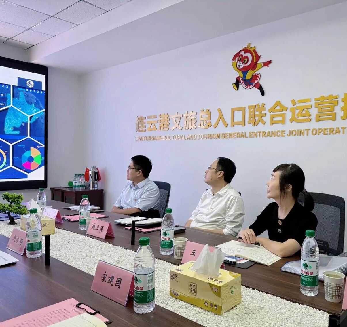 調(diào)研座談會(huì)上,孫行者科技公司項(xiàng)目負(fù)責(zé)人首先介紹企業(yè)發(fā)展概況,通過(guò)專題宣傳片展現(xiàn)公司發(fā)展歷程與核心技術(shù)成果。隨后,圍繞數(shù)字文旅服務(wù)平臺(tái)建設(shè)背景、階段性成效、運(yùn)行保障機(jī)制及未來(lái)規(guī)劃展開詳細(xì)匯報(bào),并現(xiàn)場(chǎng)演示平臺(tái)功能,重點(diǎn)講解“連云港文旅總?cè)肟?rdquo;監(jiān)管系統(tǒng)在文旅資源整合、動(dòng)態(tài)監(jiān)管中的作用,以及對(duì)客服務(wù)平臺(tái)在提升游客體驗(yàn)方面的創(chuàng)新應(yīng)用。